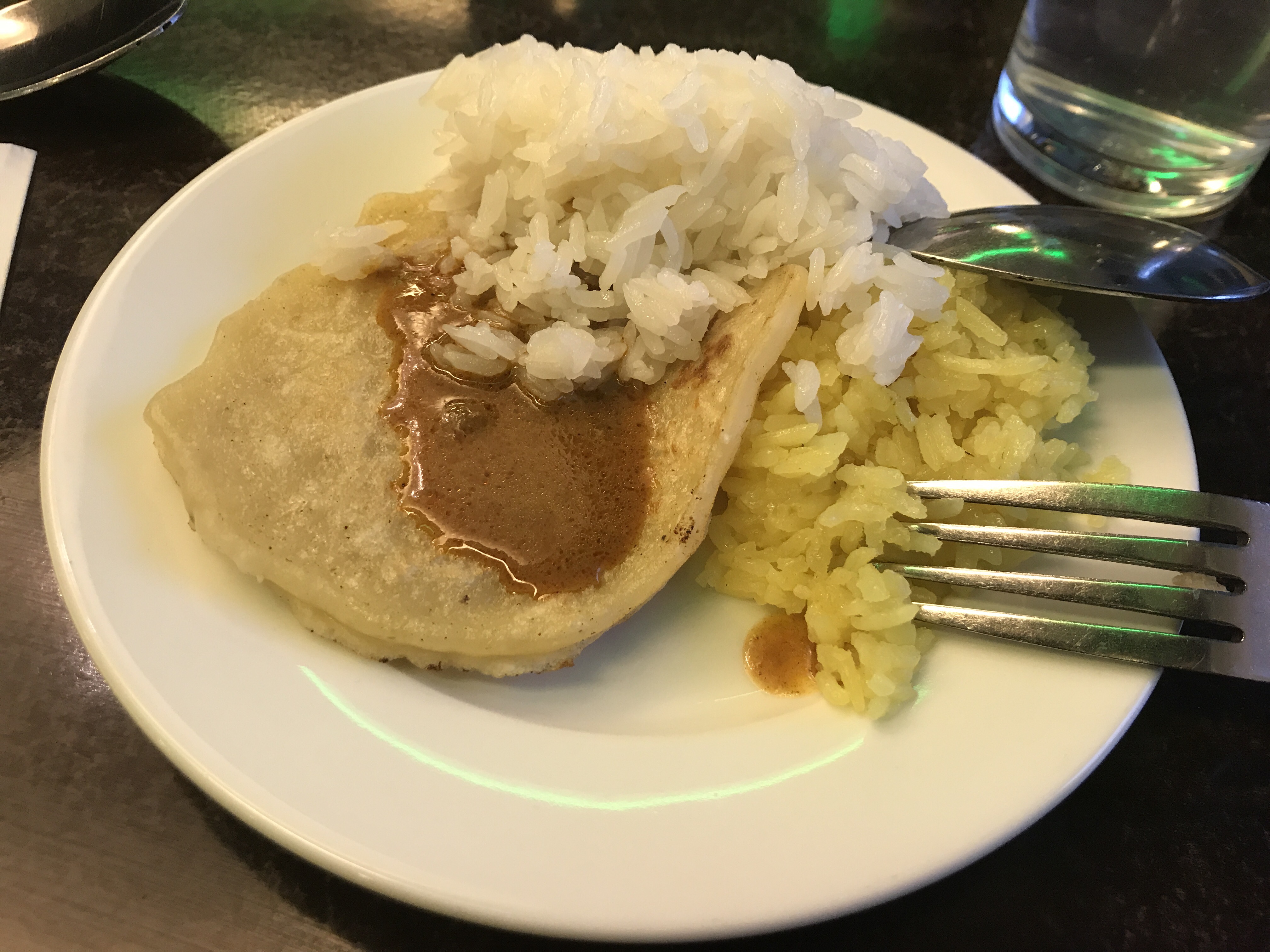 Today’s breakfast – Lempeng (flat-bread sweetened with coconut), Nasi dagang’s rice (Traveller’s Rice – the white coloured rice, which is a mixture of rice, glutinous rice, coconut milk and some other spices I can’t identify) and pulut kuning (yellow glutinous rice).