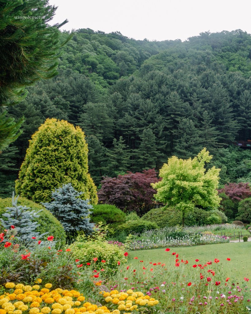 The garden in Gyeonggi, sprawling over 30,000 m² (or 300,000 square meters, depending on which website you’re looking at 😆) and housing over 5,000 plant specious in 20 different themed sections, is aptly named “The Garden of Morning Calm”. It is located around 40 km from Seoul. It embodies the spirit of idyllic scene that “Morning Calm” is known for.