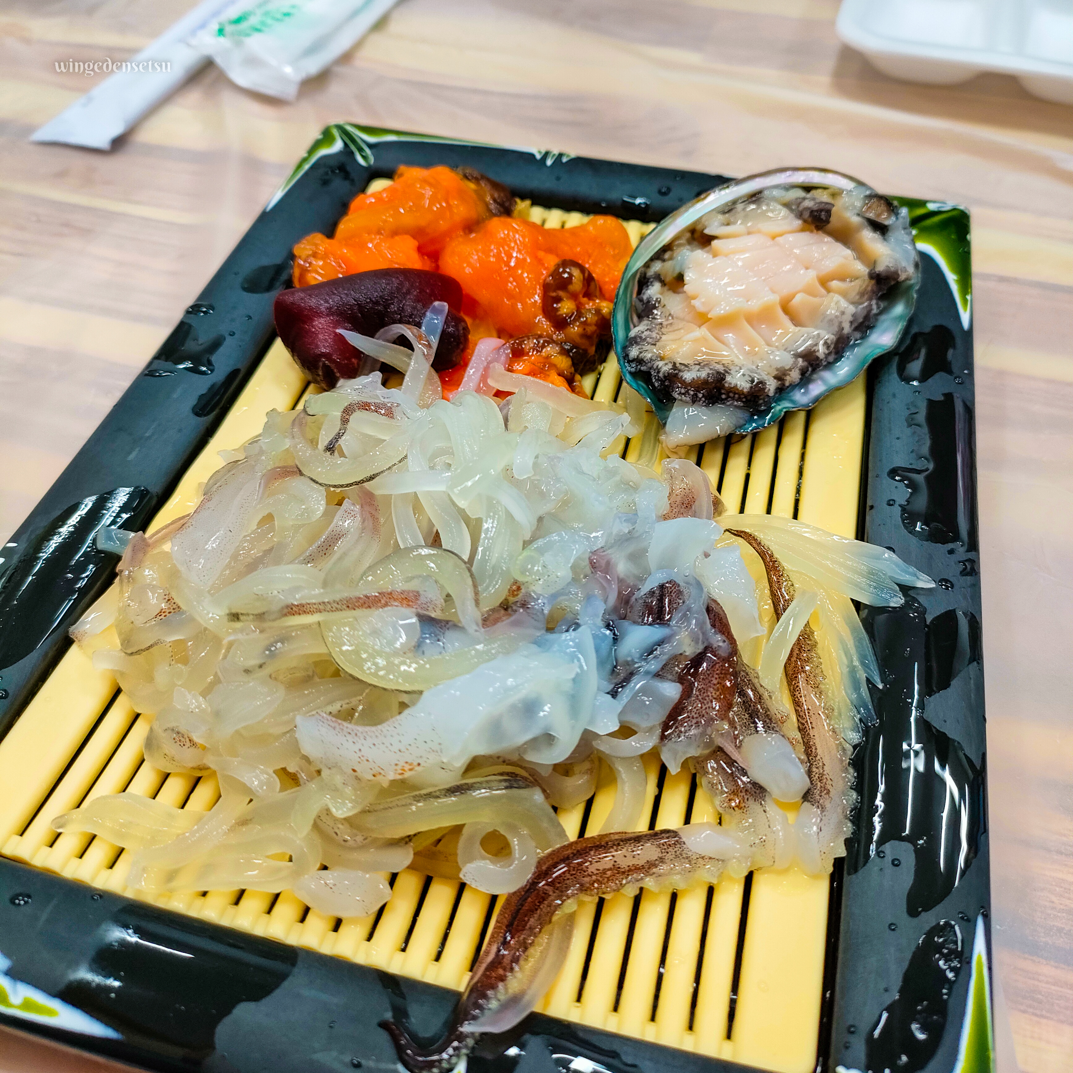 If I were to be very honest, the squid kind of freaked me out. If you’ve seen one of those travel shows where they cut the squid up and tentacles are still moving…yeah. I tried the none moving one, and the squid was pretty good. I couldn’t really taste the fish sashimi – maybe the taste is too subtle for me.